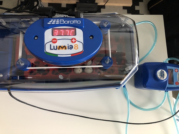 Quindi mi decisi a spendere qualcosa in più (210€) per un’incubatrice semi-professionale: una Borotto Lumia 8, dotata di rotazione moderna delle uova, igrostato Sirio e una coibentazione nettamente migliore. Ora la temperatura non sballava di più di 0,2°C, decisamente meglio di prima!