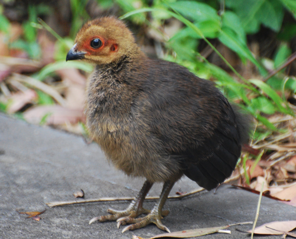 Le loro uova non hanno bisogno di rotazione, e anzi, la rotazione ucciderebbe l’embrione come nel caso delle tartarughe. Inoltre la temperatura di incubazione è molto più bassa che per gli altri uccelli, circa 33-34 gradi C vs 37-38 gradi C. I pulcini nascono col maggior grado di sviluppo di qualunque altro uccello o mammifero, similmente ai rettili. Sono totalmente indipendenti già dalla nascita e non ci sono cure parentali, perfino i coccodrilli forniscono cure parentali maggiori! Scavano fino in superficie da soli e possono addirittura volare entro poche ore dalla schiusa. Per darti un’idea, il pulcino qui sotto non ha più di 2 giorni di vita: