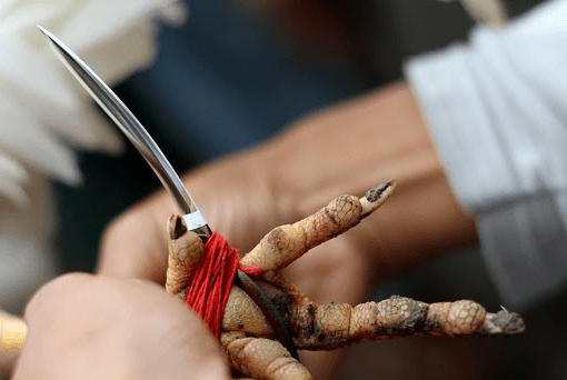 Per un incontro ufficiale, i galli vengono dotati di vere e proprie lame d’acciaio affilatissime di 10cm, posizionate sopra i loro speroni ossei naturali (che possono impiegare anche anni per diventare abbastanza lunghi), per far si che l’incontro duri meno e che i galli si possano uccidere, in modo da poter decretare un vincitore. Inutile sottolineare la brutalità di queste lotte, perché gli animali si fanno letteralmente a brandelli, e il sangue scorre a fiumi. Guarda che sciabole gli vengono attaccate alle zampe, potrebbero quasi uccidere un essere umano: