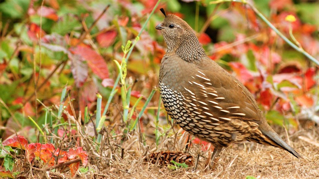La quaglia (o colino) della California (Callipepla californica), è invece una quaglia del Nuovo Mondo, ed è questo uccello: