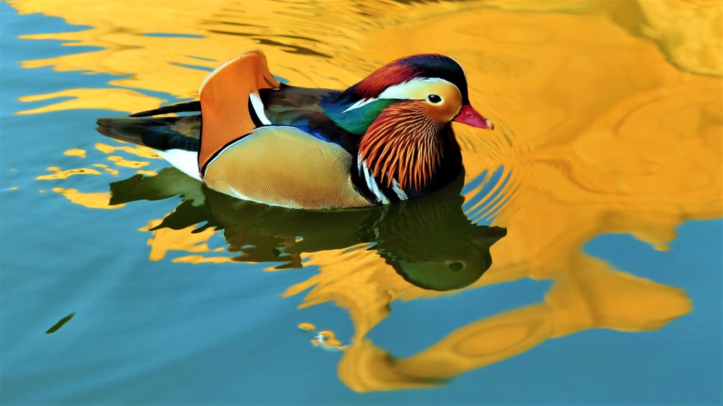 Questa bellissima anatra è originaria della Cina, ma è ormai diffusa in tutto il mondo come uccello ornamentale, soprattutto per la bellezza del maschio in livrea riproduttiva. E’ un’anatra estremamente agile in tutti e tre gli elementi (terra, aria, acqua), ed è anche una delle poche anatre che può posarsi sugli alberi. Infatti nidifica in cavità degli alberi a circa 3 metri d’altezza. Gli anatroccoli a poche ore della schiusa si lanciano nel vuoto per seguire il richiamo della madre. A volte è capitato che una coppia facesse il nido sul balcone al ventesimo piano di un palazzo in una grande città. I pulcini si lanciavano nel vuoto e finivano sul cemento, e quindi sono stati messi in salvo grazie a una gru, o avrebbero fatto una brutta fine. Nell’ultima foto, una femmina per confronto.