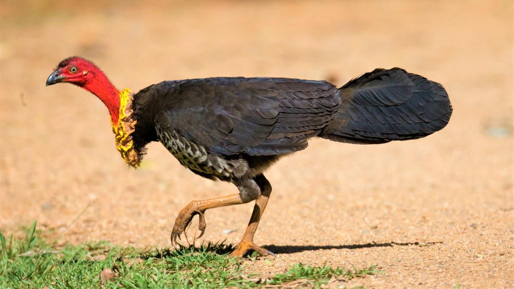Questo grosso uccello vagamente simile ad un tacchino è originario dell’Australia. Caratteristica importante di questo uccello (e degli altri della sua famiglia) è il fatto che non cova le sue uova come fanno tutti gli altri uccelli. In pratica le seppellisce sotto un cumulo di vegetazione e terra in decomposizione al Sole, e le fa incubare dal calore naturale del terreno. Lui regola la quantità di materiale per ottenere la temperatura ideale di 34°C, comunque molto più bassa che per gli altri uccelli. I pulcini nascono totalmente indipendenti e formati, e possono addirittura volare nel loro primo giorno di vita. Non esistono cure parentali, perfino i coccodrilli accudiscono meglio i loro piccoli.