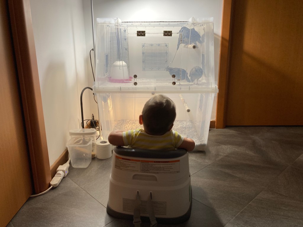 La cosa assolutamente incredibile è che le quaglie hanno assolutamente ZERO paura di tutto quello che riguarda il bebè, TUTTO! Pianti, grida, giochini con sonagli rumorosi e musichette spastiche, niente, le quaglie sono totalmente impassibili. Questa è una grande fortuna, altrimenti sarebbe una convivenza praticamente impossibile. Ecco un breve montaggio video con anche il bebè!