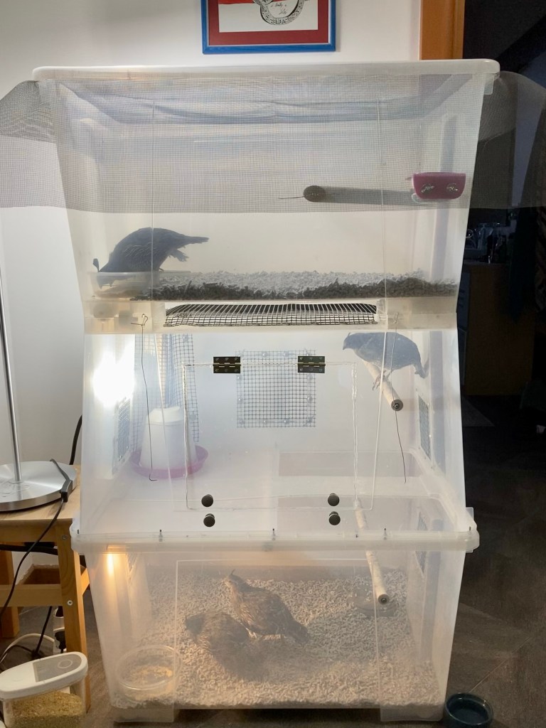 Ciao a tutti! Oggi vi scrivo un breve update sulle mie quaglie domestiche. Una settimana fa vi avevo raccontato della loro nuova location in sala, e del fatto che le facevo uscire in due tornate, prima Harem e Zen, poi Belle, Tutù e Windows, per poterle gestire meglio. Beh, oggi vi comunico che in meno di una settimana questa routine è andata completamente a quel paese! Infatti qualcosa è cambiato abbastanza repentinamente nelle loro dinamiche sociali, e ho dovuto prendere immediatamente una decisione drastica: dividere il gruppo in due scatole separate, in modo permanente. In pratica, ora ho un condominio di quaglie!