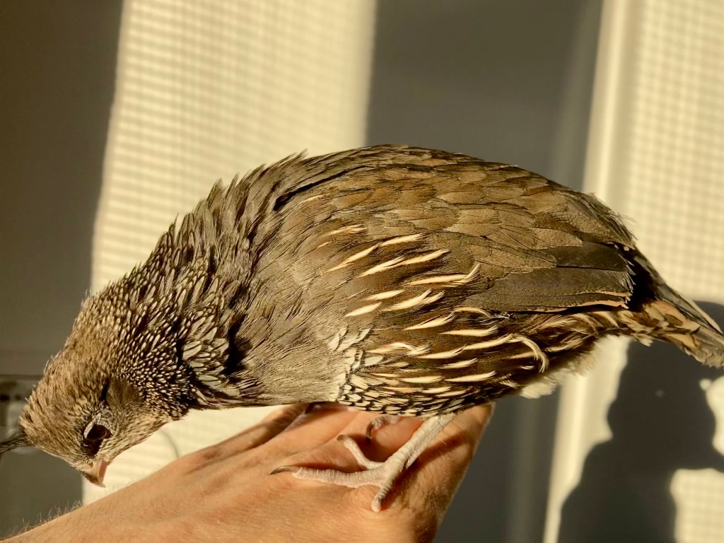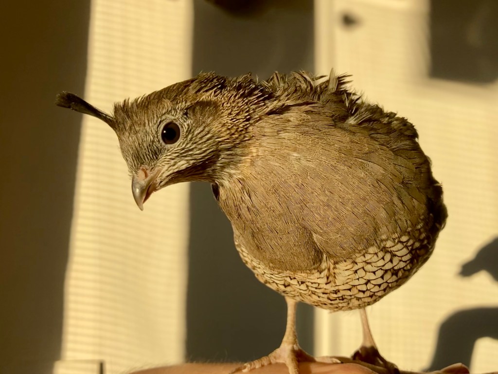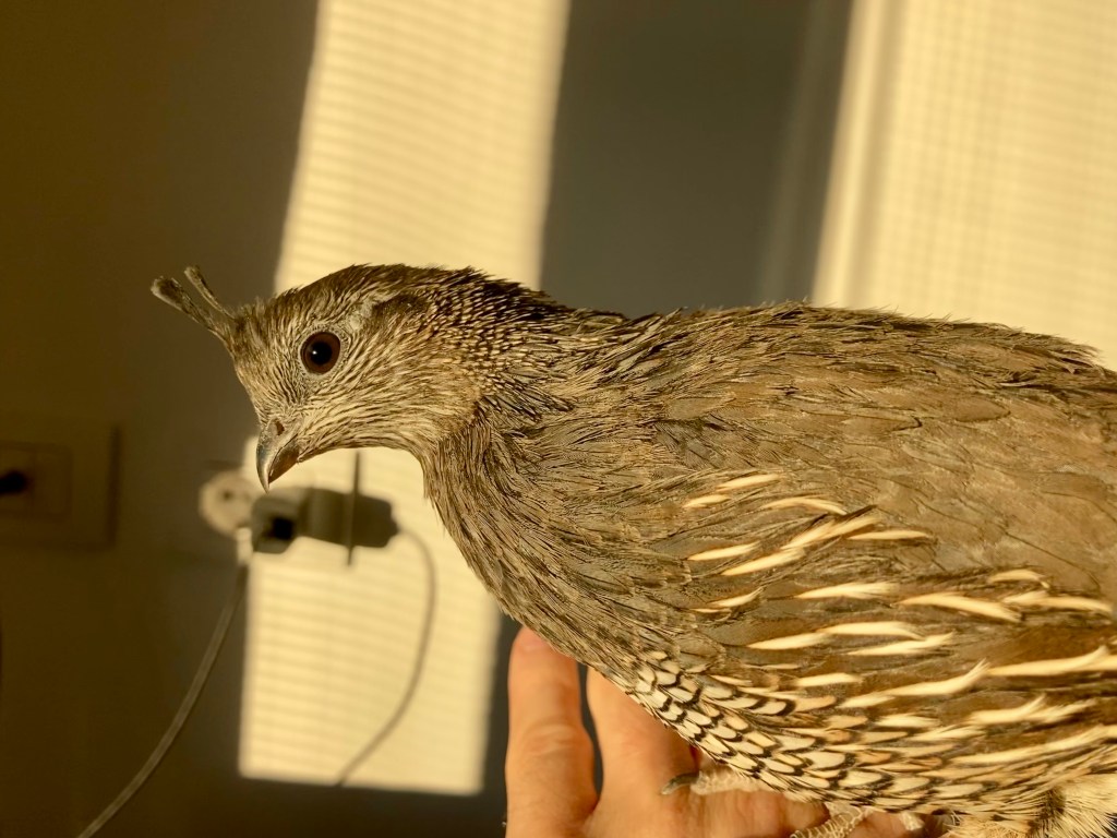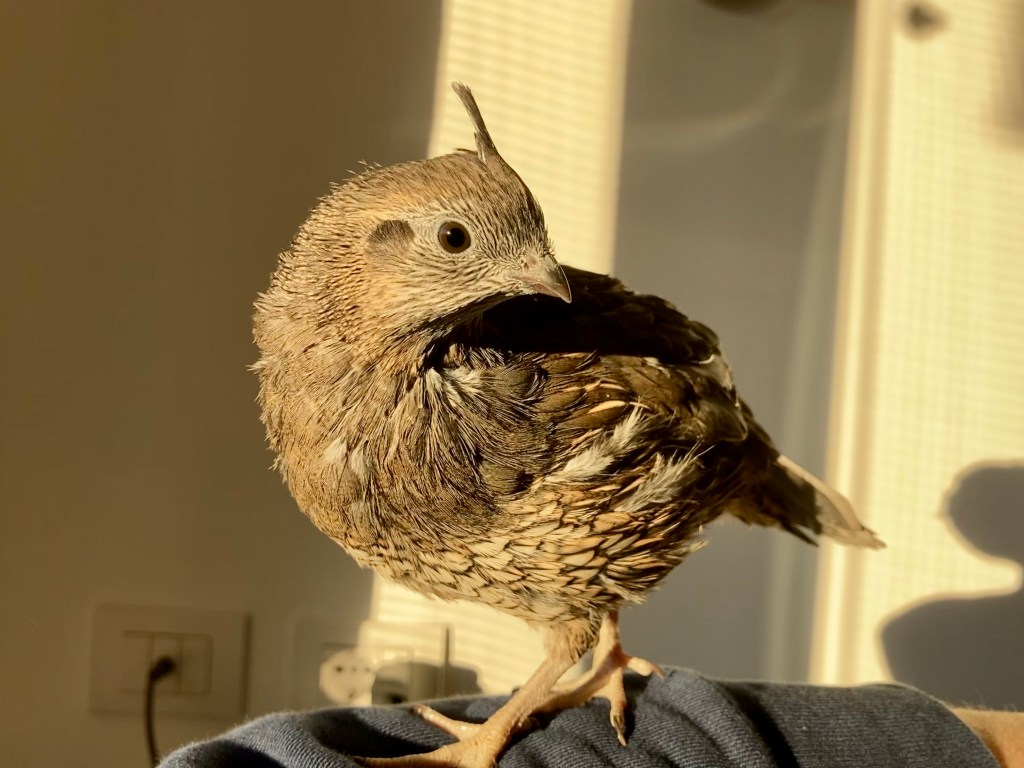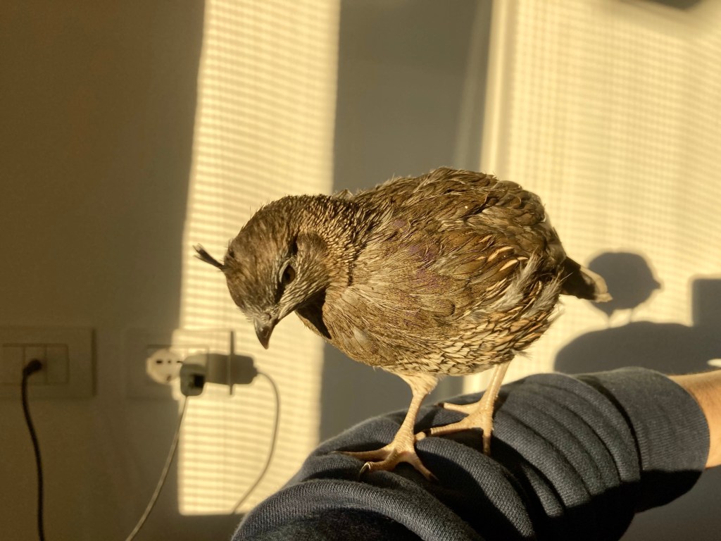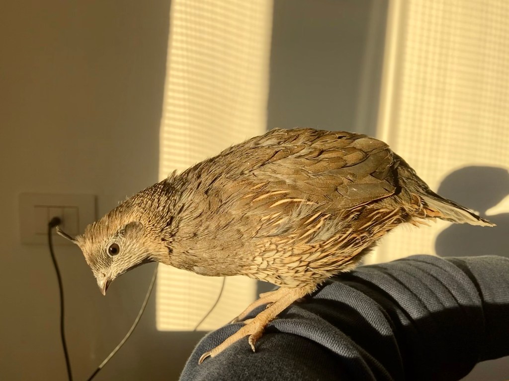Windows è una quaglia molto tranquilla, e non le piace molto esplorare la casa, tantomeno se da sola. Infine, ad oggi non ha ancora deposto alcun uovo.