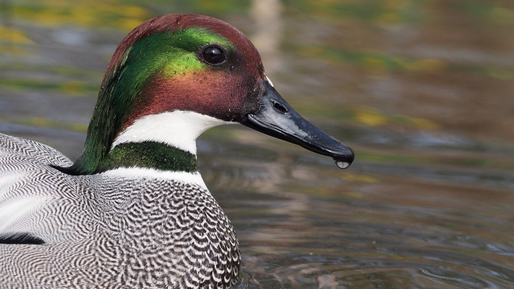 Questa bellissima anatra vive nell’est del continente asiatico, tra Russia, Cina, Giappone, Mongolia e India (quest’ultimo è il luogo di svernamento). Anche questa è un’anatra piuttosto piccola, ma comunque decisamente più grande della precedente, con un peso compreso tra i 400 e gli 800 grammi. Anche in questo caso il maschio è molto appariscente, con una testa verde e marrone iridescente e delle finissime decorazioni bianche e nere sul petto. La femmina è marrone e poco vistosa, ma sia il maschio che la femmina hanno delle piume copritrici alari lunghe e curve, che danno il nome alla specie.