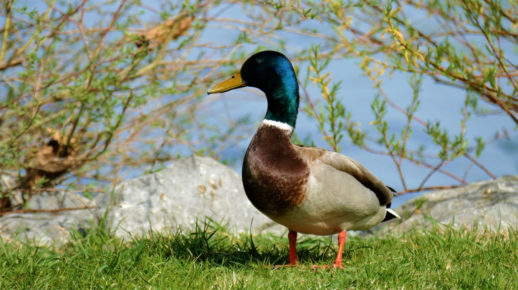 Quest’anatra è sicuramente una delle più diffuse e conosciute in tutto il mondo. Il germano reale è anche il progenitore di quasi tutte le razze di anatra domestica di allevamento. Questa è un’anatra di medie dimensioni, con un peso che può andare dai 700 ai 1600 grammi. Anatra perfettamente abituata a vivere a contatto con gli esseri umani, è un uccello estremamente adattabile che non è difficile da trovare nei parchi nel bel mezzo delle metropoli. Il maschio in piumaggio riproduttivo è inconfondibile, con la sua testa verde iridescente, il becco giallo e il petto marrone, la femmina come al solito ha un piumaggio criptico e il becco arancio-nero.