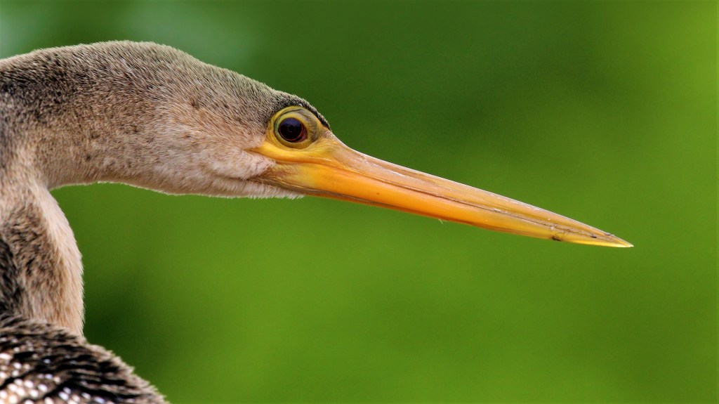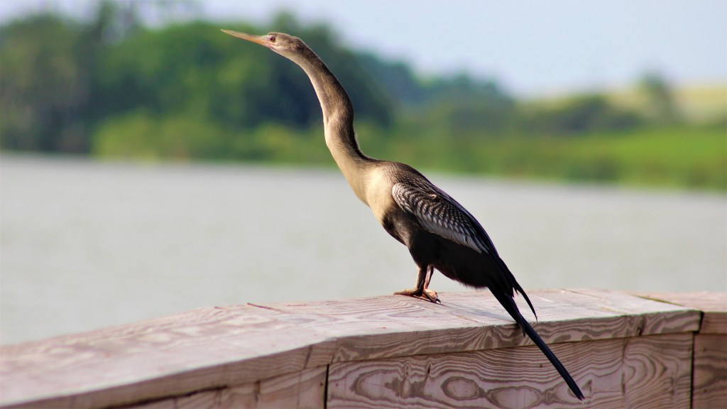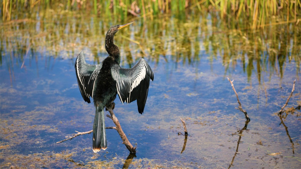 Questi stranissimo uccello appartiene alla famiglia dei cormorani, ma ha un aspetto molto più affusolato, e infatti viene anche chiamato “uccello serpente”. Come tutti i cormorani, anche l’aninga caccia immergendosi completamente e andando in profondità sia per trovare cibo sul fondale sia per cacciare i pesci con il suo lungo becco appuntito. Per potersi immergere, l’aninga deve poter eliminare completamente l’aria dal suo piumaggio, e infatti poi prima di riuscire di nuovo a volare deve asciugare le ali al sole tenendole distese.