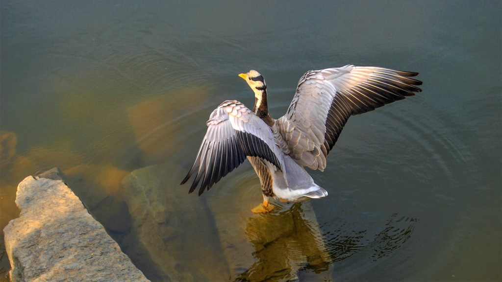 Quest’oca di medie dimensioni (raggiunge i 3,2 kg) vive in Asia centrale, e migra sorvolando l’Himalaya. E’ nota per le altitudini estreme a cui vola per sorvolare la catena montuosa più alta e imponente del pianeta, e passa la maggior parte del tempo in volo a quote superiori ai 5800 metri. Un’oca è stata seguita con un GPS, ed è stata segnalata mentre volava a 7300 metri. Senza dubbio l’oca indiana è uno degli uccelli che può volare a più alte quote al mondo.