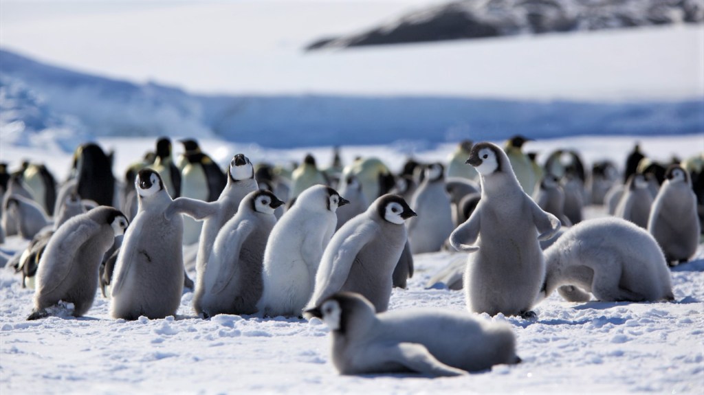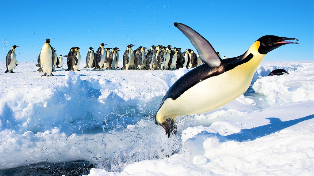 Questo grosso uccello attero (non in grado di volare) può arrivare fino a 45 chili di peso, e vive nell’emisfero australe come tutti i pinguini. Abile nuotatore, spende la maggior parte del tempo in mare aperto per cacciare pesci e moluschi. Sulla terraferma è molto goffo e impacciato, e a volte si muove sulla pancia spingendosi con le zampe per fare prima. Nidifica in Antartide e isole vicine in enormi colonie. I maschi covano un solo uovo nel nella gelida notte antartica, ed è l’animale che può resistere meglio al freddo. Tuttavia si mettono tutti vicini e fanno a turno a stare all’esterno, altrimenti anche loro morirebbero di freddo. Le femmine stanno in mare tutto l’inverno e ritornano quando il pulcino è già nato.