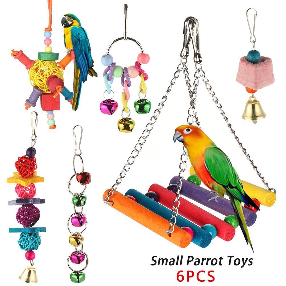 Gabbie del genere sono molto costose, perché devono essere particolarmente robuste per resistere al potente becco uncinato dei grossi pappagalli. Hanno inoltre porte molto ampie, e spesso anche posatoi esterni per dare più libertà all’animale. Come ho già detto, i pappagalli hanno bisogno di molti stimoli, altrimenti possono cadere in depressione e mostrare comportamenti autolesionisti. In commercio esistono per fortuna una marea di accessori e giocattoli per tenerli impegnati, tipo questi: