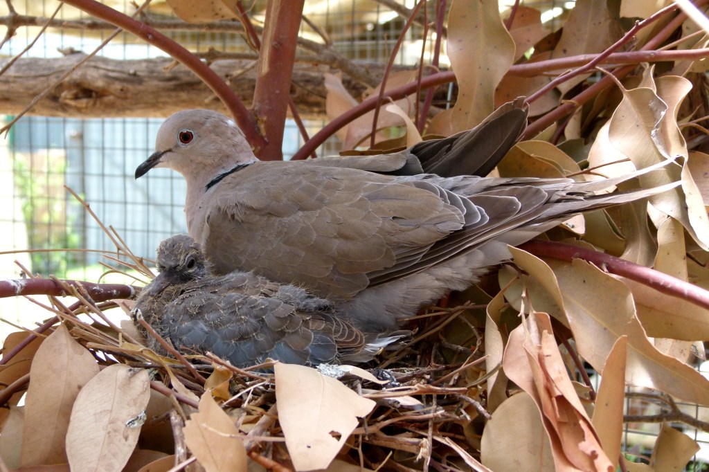 I columbidi sono uccelli molto silenziosi e che si adattano bene alla convivenza con noi umani. In cattività si riproducono molto facilmente, se gli vengono forniti spazi e materiali adeguati ma, ancora una volta, il piccione ha necessità diverse. Tortora dal collare africana (prima foto qui sotto), tortora diamantina, e tortora zebrata costruiscono un vero e proprio nido a mezza coppa sugli alberi: