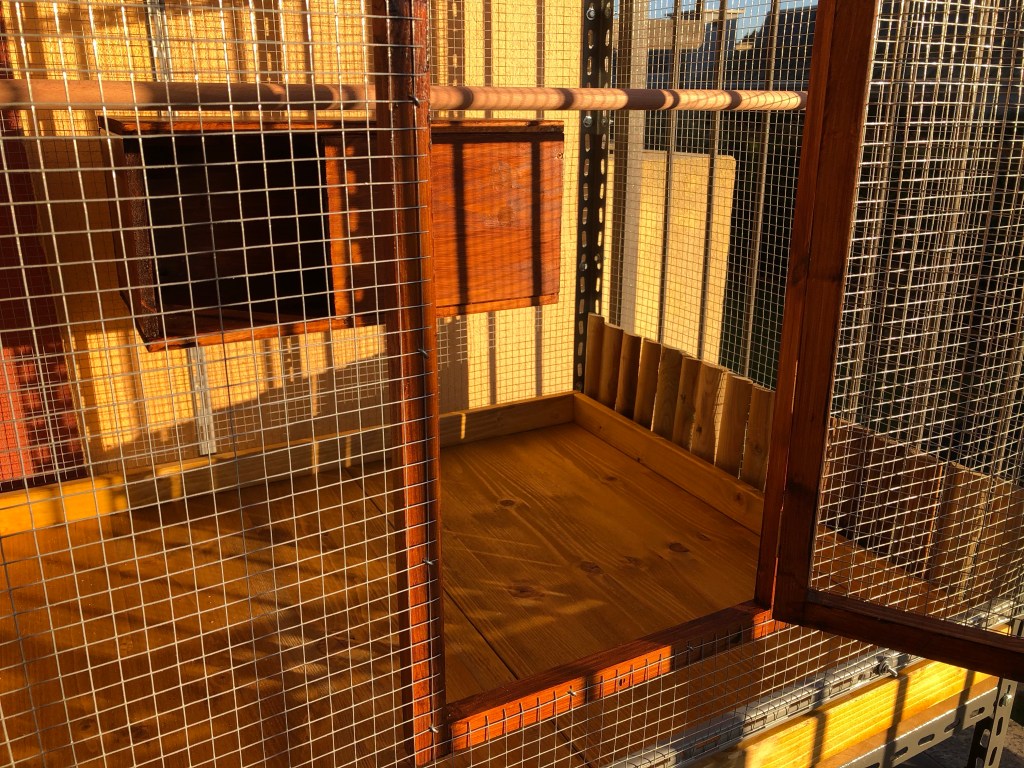 Questa voliera è chiaramente da esterno. Per i miei colini indoor le soluzioni commerciali sono assolutamente inadatte, specialmente a causa delle sbarre. Sono infatti uccelli che scavano molto buttando in giro tutto, e con una gabbia “standard” la mia casa diventerebbe un disastro! Come vi avevo raccontato qualche post fa, la mia attuale soluzione ideale è la seguente: