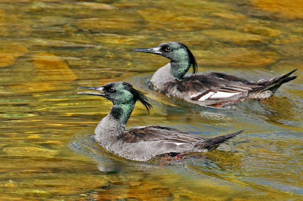 Al genere Mergus appartengono quattro specie di uccelli acquatici, chiamati comunemente “smerghi”: lo smergo minore (Mergus serrator), lo smergo maggiore (Mergus merganser), lo smergo cinese (Mergus squamatus), e lo smergo brasiliano (Mergus octosetaceus). Le ultime due specie sono in declino, specialmente lo smergo brasiliano che, con meno di 250 uccelli ancora in vita, è una delle specie aviane più prossime all’estinzione. E le cause sono le solite: inquinamento dei fiumi e distruzione dell’habitat (deforestazione) per far spazio all’agricoltura e agli allevamenti. Ringraziamo il governo brasiliano. Inoltre, altre due specie si sono estinte in tempi piuttosto recenti, una attorno al 1500, e una agli inizi del ‘900. La prima era endemica delle isole Chatham, la seconda della Nuova Zelanda.