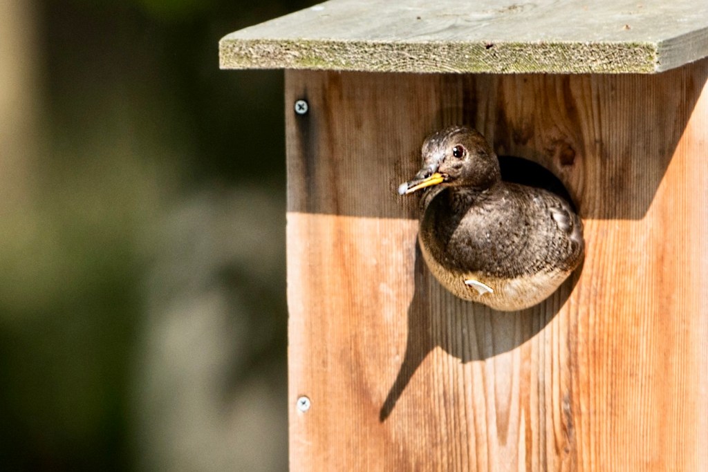 I pulcini seguono la madre in acqua immediatamente, e spesso la usano anche come “barca” per riposarsi!